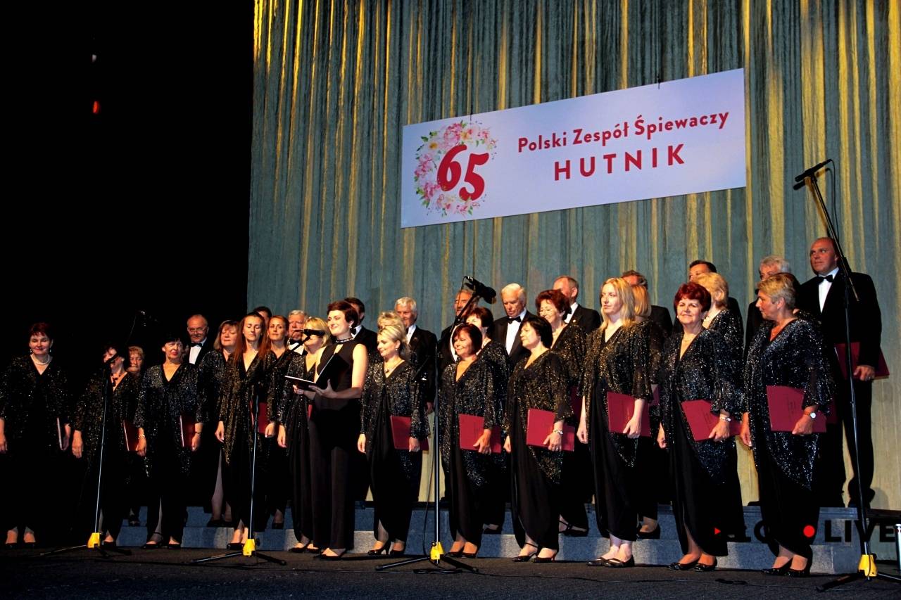 Sobotnią galę jubileuszową „Hutnika” prowadziła gościnnie chórzystka „Canticum Novum”, Krystyna Pękała. – William Shakespeare raz powiedział, że kiedy dzielimy się żalem z drugim człowiekiem, żal staje się o połowę mniejszy. Kiedy zaś dzielimy się radością, rośnie ona dwukrotnie. Jak zatem musi rosnąć radość „Hutnika” dzielącego się swymi emocjami z wami wszystkimi zebranymi dziś na widowni – przekonywała, dodając, że 65 lat to niemała liczba, a zespół – jako że nie należy do leniwych – wykorzystał każdą godzinę pracy jak najowocniej. Dowodem na to było m.in. zdobycie w 2017 roku Złotego Dyplomu i Pucharu na X Festiwalu Chóralnym „Gaude Cantem” w Bielsku-Białej.