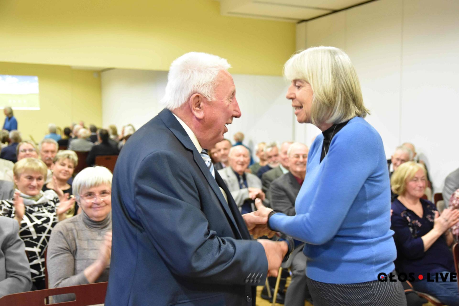 Halina Twardzik dziękuje Władysławowi Kroczkowi. Fot. BEATA SCHÖNWALD