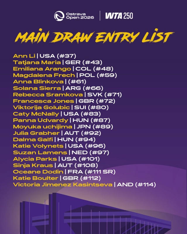 W drabince Ostrava Open 2026 brakuje na chwilę obecną