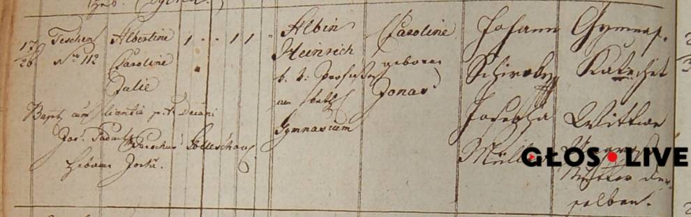 Niedługo potem Albin Heinrich przeniósł się do Cieszyna, gdzie zyskał stabilizację i w życiu zawodowym, i w życiu osobistym. Znalazł pracę w gimnazjum katolickim, gdzie uczył głównie geografii i historii. W 1814 roku zaręczył się z Karoliną Jonas, jasnowłosą córką adwokata. Pobrali się rok później.