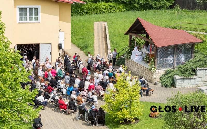 Rozpoczęto mszą świętą na zewnątrz kościoła, którą celebrował ks. biskup wraz z kapłanami parafii jabłonkowskiej i kilku kapłanami z zewnątrz. Rozpoczęto mszą świętą na zewnątrz kościoła. Między innymi celebrowali ją biskup Lobkowicz i proboszcz jabłonkowskiej parafii ks. Janusz Kiwak. Oprócz przedstawicieli i wychowanków Caritasu, w mszy uczestniczyły także siostry zakonne, które chórem i z gitarą akompaniowały do mszy, zakonnice przybyłe z Niemiec oraz miejscowi parafianie. W trakcie ogłoszeń biskup zwrócił się do sióstr przybyłych zza zachodniej granicy. Podziękował im po niemiecku za przybycie i wspólną modlitwę i wyraził nadzieję, że to nie ostatnie ich odwiedziny na tych terenach.