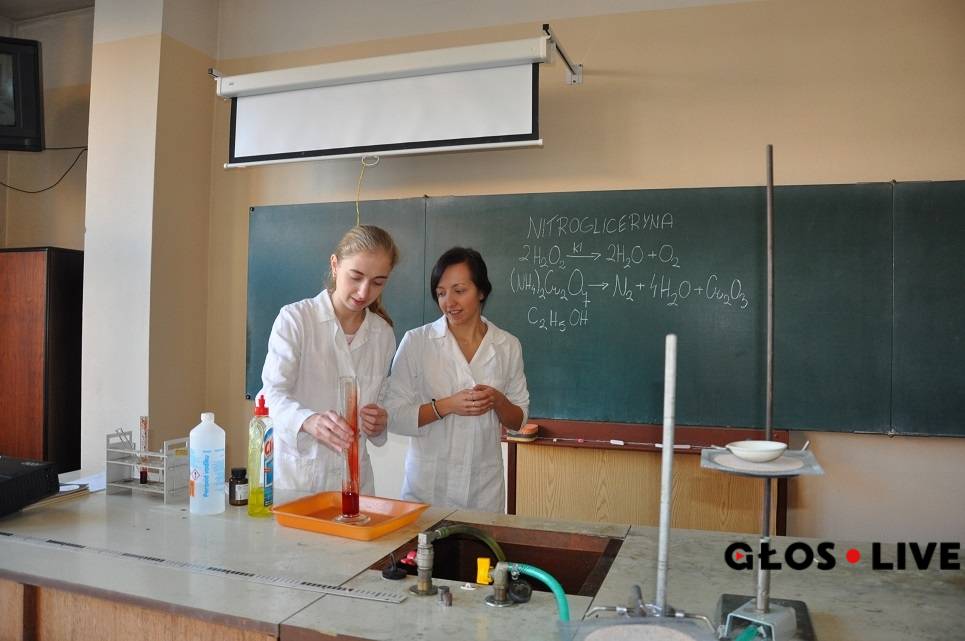 Jeszcze bardziej emocjonująca jest jednak wizyta w laboratorium chemicznym. – Gimnazjum jest bardzo dobrym wyborem dla tych, którzy chcą w przyszłości studiować medycynę lub farmację. Tyle chemii nie ma w żadnej innej szkole – przekonują dziewczyny ubrane w białe płaszcze ochronne. Zaraz przeprowadzą kilka „mrożących krew w żyłach” reakcji chemicznych. Piętro niżej należy z kolei do świata fizyki. Tu na gości czeka męska ekipa oraz kilka eksperymentów będących świadectwem iluzji optycznej.