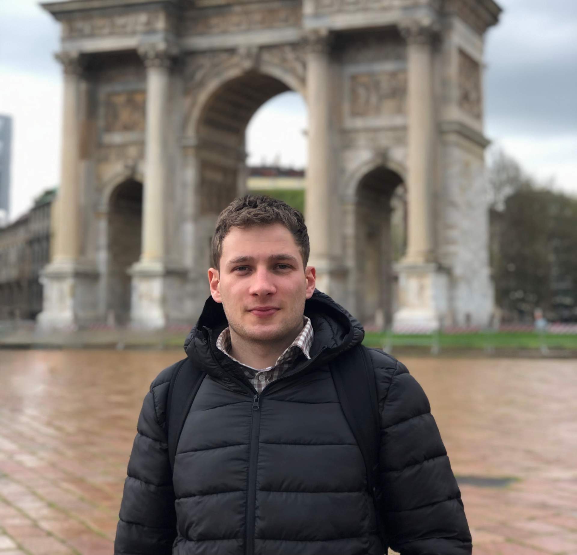 Marian Szpyrc w zagranicznym wydaniu. W wolnej chwili lubi podróżować. W tle Łuk Pokoju w Mediolanie. Fot. ARC
