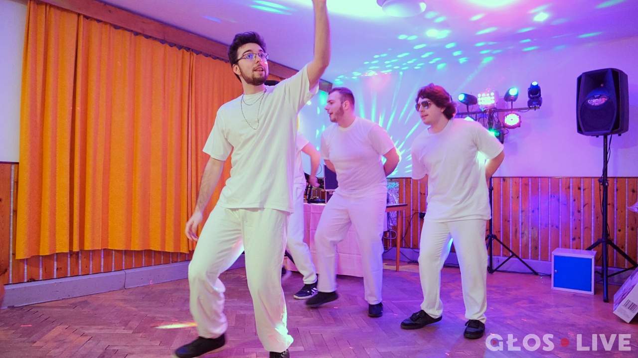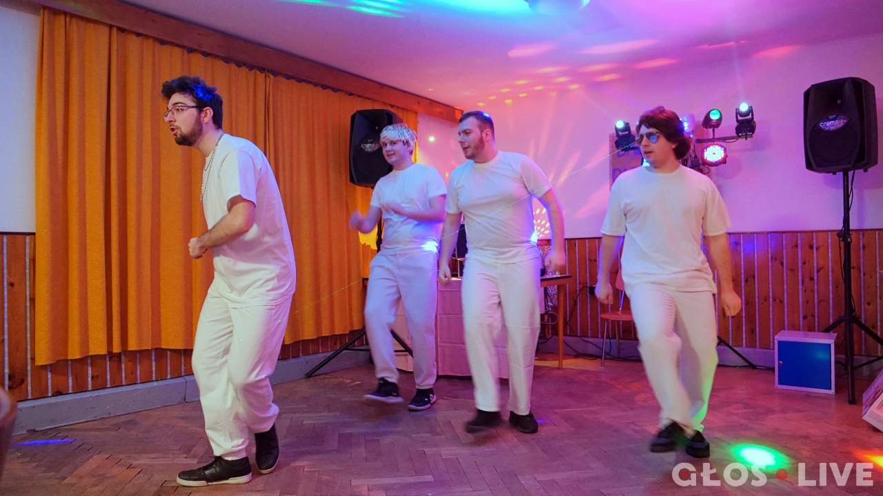 Tańce i luźne rozmowy przy stołach przerywa nagle pisk i oklaski. Na salę wchodzi niespodzianka i gwiazda wieczoru. Czterech chłopaków ubranych na biało. W ich kreacjach i dodatkach (klips w uchu, srebrny łańcuch na szyi, peruka koloru blond) czuć powiew lat 90. Czy to Václav Jelínek, David Škach i Aleš Lehký? Nie! O jednego więcej – to Filip Jiravský, Wojciech Zyder, Sebastian Kontír i Marek Zachwieja z ZPiT „Suszanie”, którzy wcielili się w rolę popularnego pod koniec ubiegłego zespołu czeskiego boys bandu Lunetic. – Tutaj chodziło o parodię i dużą porcję zabawy, na innych balach z kolei tańczyliśmy przebrani za agentów 007 – wyjaśnił Jiravský.