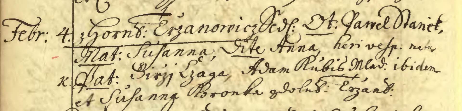 Metryka chrztu Anny Staniek, urodzonej w 1717 roku w Trzanowicach Górnych. Źródło: Biblioteka i Archiwum im. B.R. Tschammera w Cieszynie.