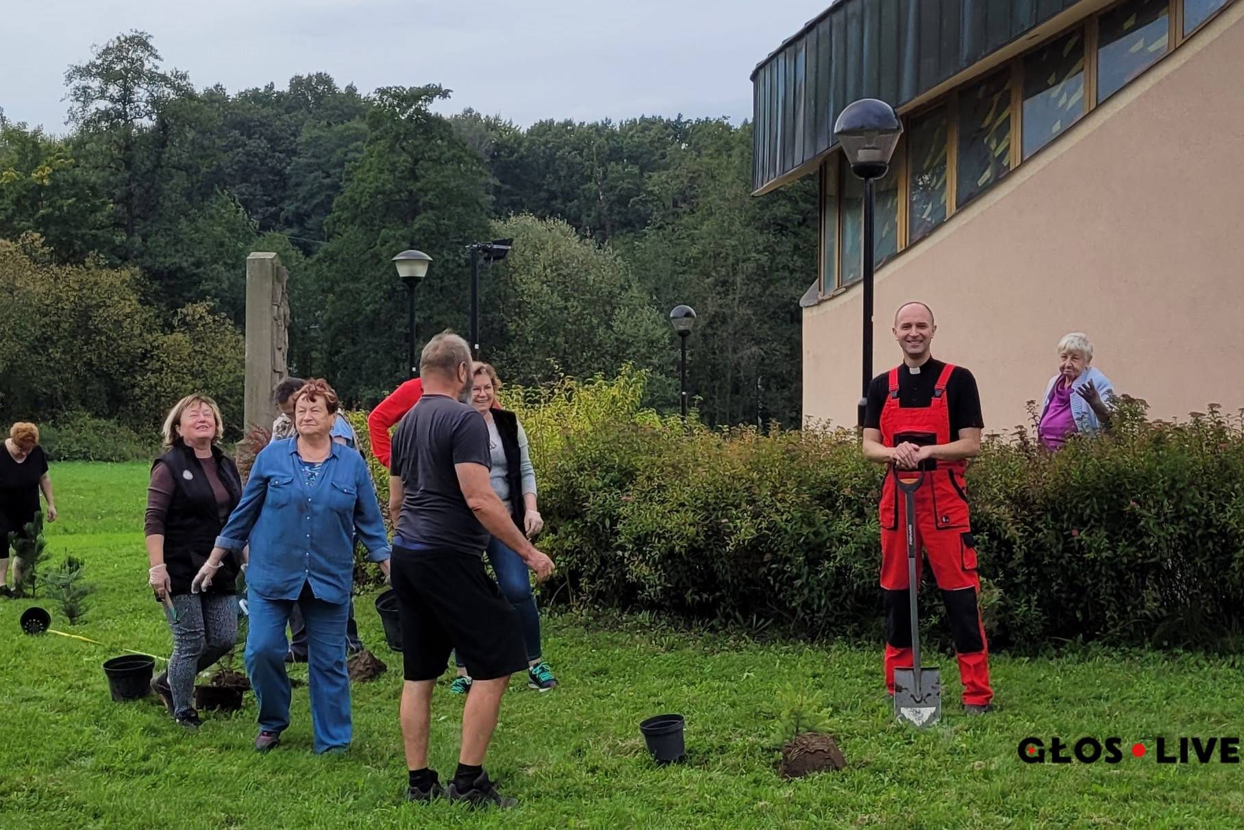 razem z proboszczem ks. Rolandem Manowskim posadzili tam własnoręcznie 60